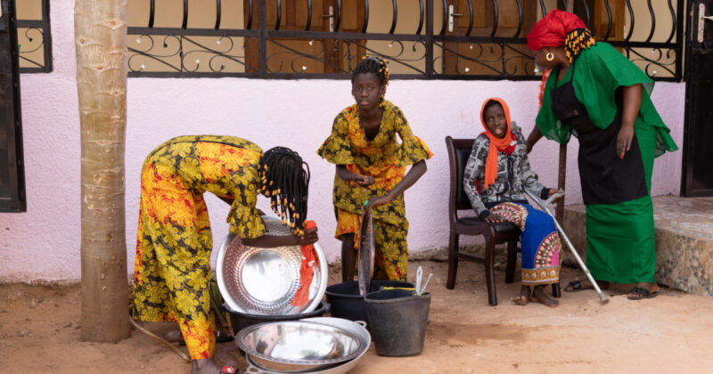 Im tina-Haus der Hoffnung werden derzeit 10 körperbehinderte Kinder, 9 blinde Kinder und 8 gehörlose Kinder im Alter von 4 bis 17 Jahren betreut. Der Leiter des Hauses Labaly Goudiaby und seine „rechte Hand“ und Stellvertreter Abass Goudiaby sorgen rund um die Uhr für das Wohl unserer Schützlinge.