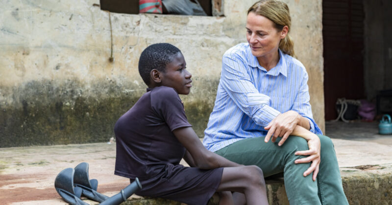 Moussa (4), beide Beine deformiert, kann nicht laufen