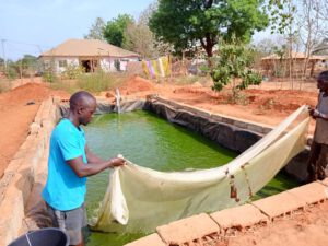 Plantage für Gemüse, Fischzucht, Hühnerzucht und Ziegen